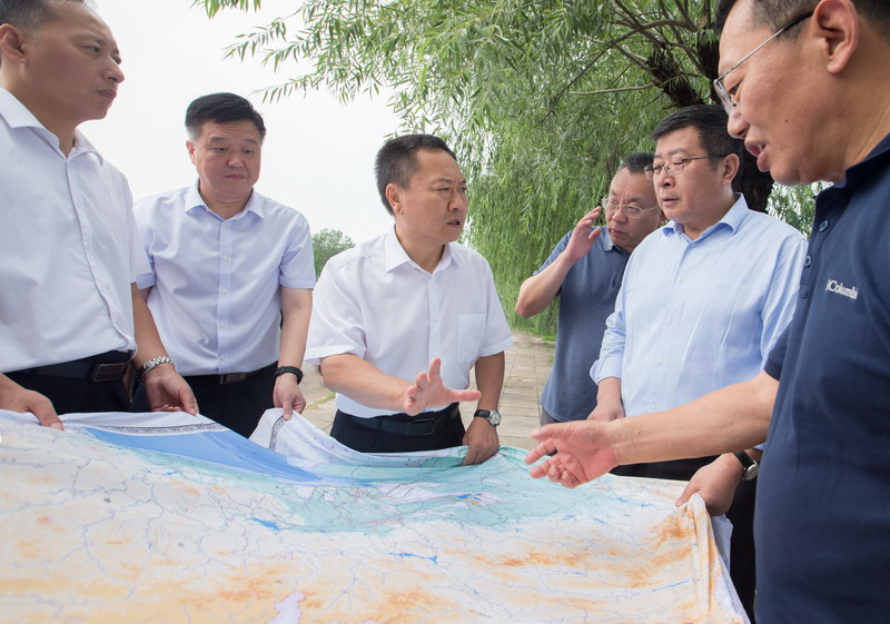 李國英先后來到永定河左堤趙村險工、大清河水系北拒馬河與南水北調中線工程交叉段、白溝河左堤東茨村段、南拒馬河右堤東馬營段、新蓋房樞紐,詳細了解洪水演進情況,現場檢查防險、搶險和流域防洪工程體系調度工作。
